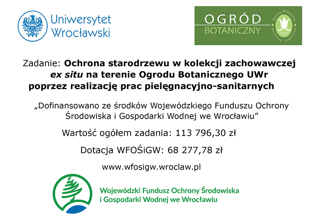 Ochrona starodrzewu w kolekcji zachowawczej ex situ na terenie Ogrodu Botanicznego UWr poprzez realizację prac pielęgnacyjno-sanitarnych