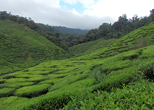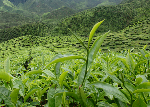 Ta piękna zimozielona roślina należy do zacnej rodziny kameliowatych (Theaceae), która obejmuje wiele gatunków roślin ozdobnych. Pochodzi z Azji Wschodniej i Południowo-Wschodniej oraz subkontynentu indyjskiego. Jej liście są skórzaste, błyszczące, długości 5–15 cm i szerokości 2–5 cm. Kwiaty, osadzone w kątach liści na cienkich szypułkach, mają 7–8 białych płatków. Owocem jest zdrewniała torebka, w której wykształca się 1–3 nasion. Znane są dwie odmiany botaniczne herbaty: Camellia sinensis var. sinensis oraz Camellia sinensis var. assamica. Odmiana typowa to krzew o drobnych liściach, który rośnie w chłodnych, wysokogórskich rejonach środkowych Chin i Japonii. Odmiana assamska jest drzewem o szerokich liściach, dorastającym nawet do 15 m, i najlepiej rozwija się w wilgotnym, tropikalnym klimacie północno-wschodnich Indii oraz chińskich prowincji Syczuan i Junnan. Herbata wymaga ciepłego i łagodnego klimatu, a optymalna dla jej rozwoju średnia temperatura roczna winna wynosić 20˚C, przy rocznej sumie opadów około 2000 mm.