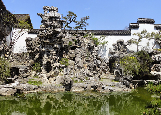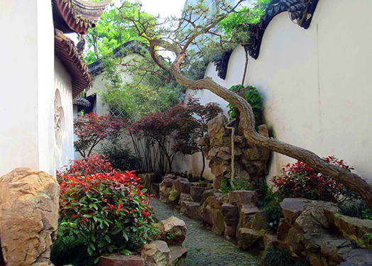 ROŚLINY Kontrastują z prostymi liniami architektury oraz trwałością i nieruchomością skał. Reprezentują naturę w jej najdoskonalszej formie, wzbogacając ogród w dźwięki i zapachy. Rośliny komponowane są w wielogatunkowe grupy, kontrastujące ze sobą swoimi cechami. Rośliny zimozielone sygnalizują trwałość natury, a rośliny kwitnące, przebarwiające się jesienią i gubiące liście mówią o cyklicznych przemianach przyrody. Każdy kwiat i drzewo w ogrodzie ma swoje metaforyczne znaczenie. Sosna jest symbolem długowieczności i wytrwałości, a także stałości w przyjaźni. Bambus reprezentuje mądrego człowieka, skromnego i poszukującego wiedzy, a także symbolizuje elastyczność i trwałość. Śliwy są czczone jako znak odrodzenia po zimie i nadejścia wiosny. Drzewo brzoskwiniowe to metafora długowieczności i nieśmiertelności. Gościom proponuje się gałązki wierzby na znak przyjaźni. Najbardziej cenione rośliny o ozdobnych kwiatach to storczyk, piwonia i lotos. Za dynastii Tang piwonia, symbol bogactwa, była najsłynniejszym kwiatem w ogrodzie. Natomiast poeta Zhou Dunyi napisał słynną elegię do lotosu, porównując go do człowieka uczciwego, pełnego równowagi. Lotos to także symbol poszukiwania wiedzy. Storczyki są wyrazem szlachetności i niespełnionej miłości, jak w chińskim wyrażeniu „daleka orchidea w samotnej dolinie”.