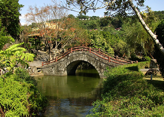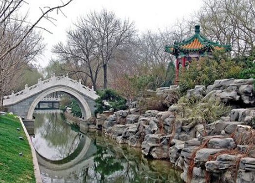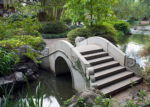 ARCHITEKTURA Mosty i kładki licznie pojawiają się nad kanałami i strumieniami. Mają formę łuku lub prostej zygzakowatej kładki. Mogą być drewniane lub kamienne. W bogatych założeniach bywają budowane z rozmachem – kryte dachem, z rzeźbionymi barierkami i malowane w różnobarwne wzory, tak aby stworzyć zachwycające odbicie w wodzie. Często pod łukowatym mostem powstaje wnęka półksiężyca, którą dopełnia odbicie w lustrze wody, co jest zgodne z zasadą harmonii i równowagi. Pagody, altany i pawilony zajmują dużą część chińskiego ogrodu i są z nim połączone w harmonijny sposób. Często budowane na planie sześcio- lub ośmioboku. Umożliwiają obserwacje różnych scen ogrodowych z różnych perspektyw i w różnych okolicznościach zmieniającej się przyrody. Zapewniają miejsce odpoczynku i kontemplacji, umożliwiają schronienie przed deszczem, słońcem lub wiatrem. Bramy pojawiają się w większych założeniach ogrodowych, tworząc reprezentacyjne wejścia do ogrodu lub jego kolejnych części. Majestatyczne bramy budowano dla uczczenia dostojników, stawiano je na drogach prowadzących do mauzoleum. Mają zazwyczaj trzy lub pięć przejść. |